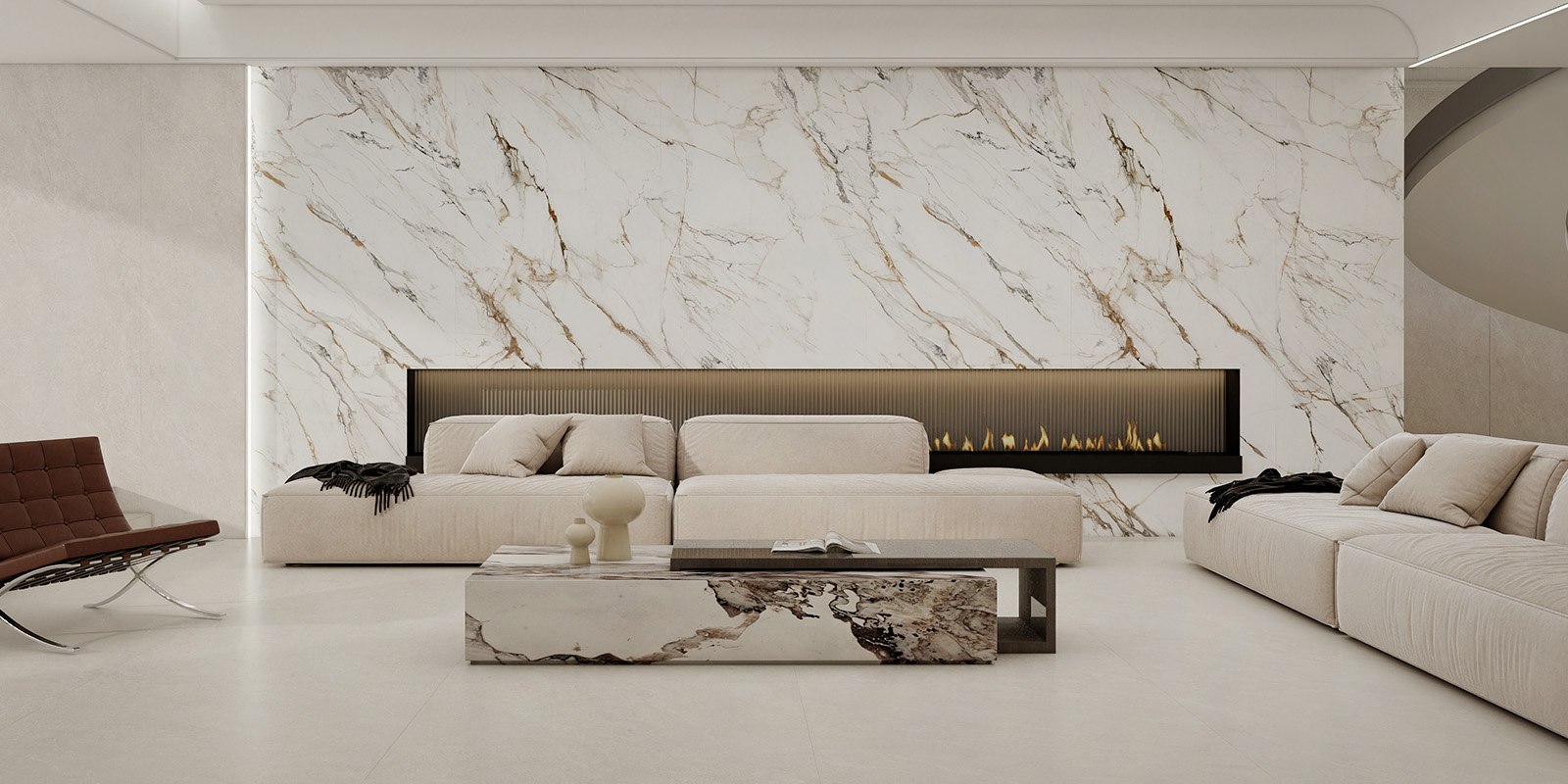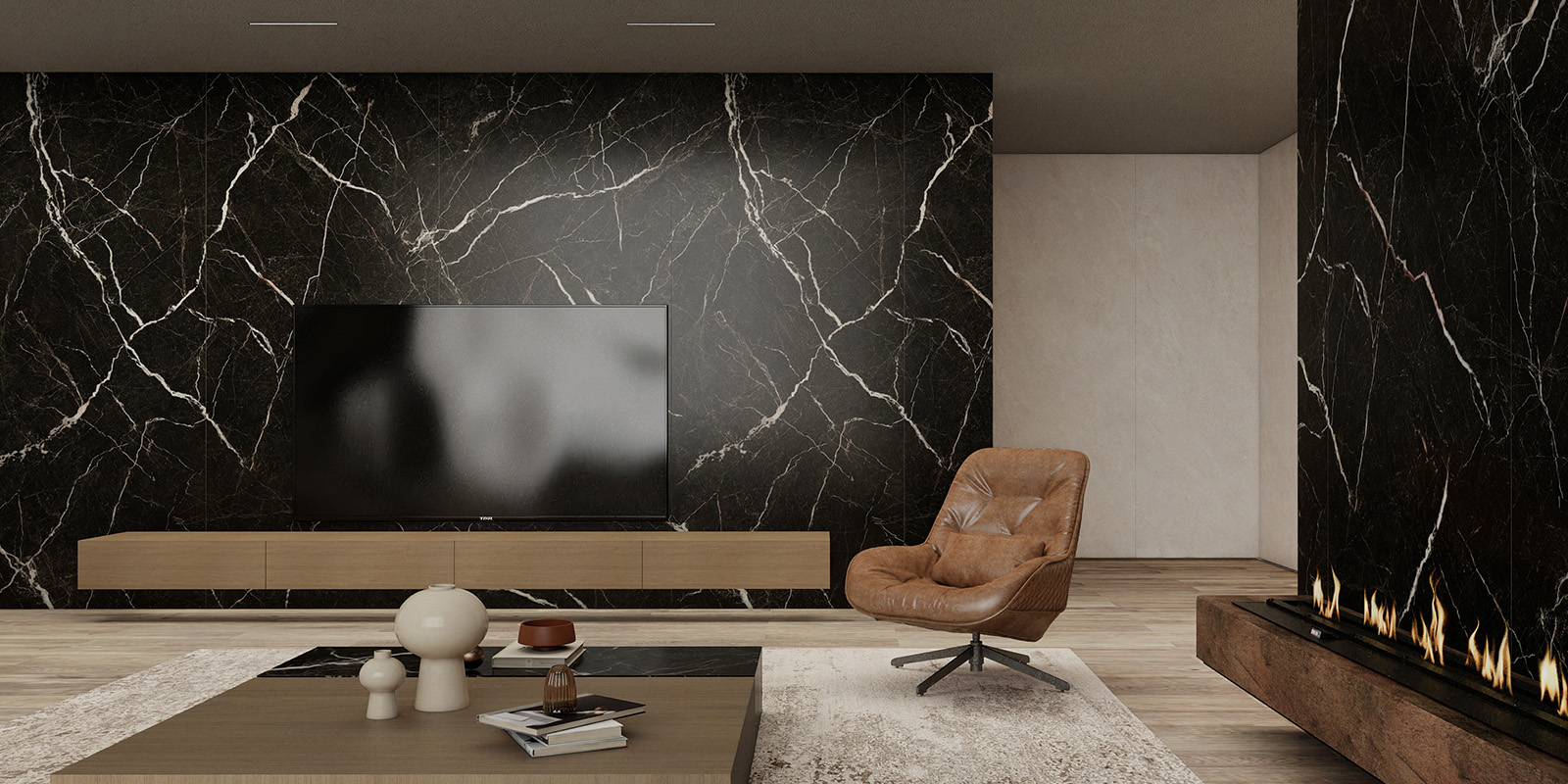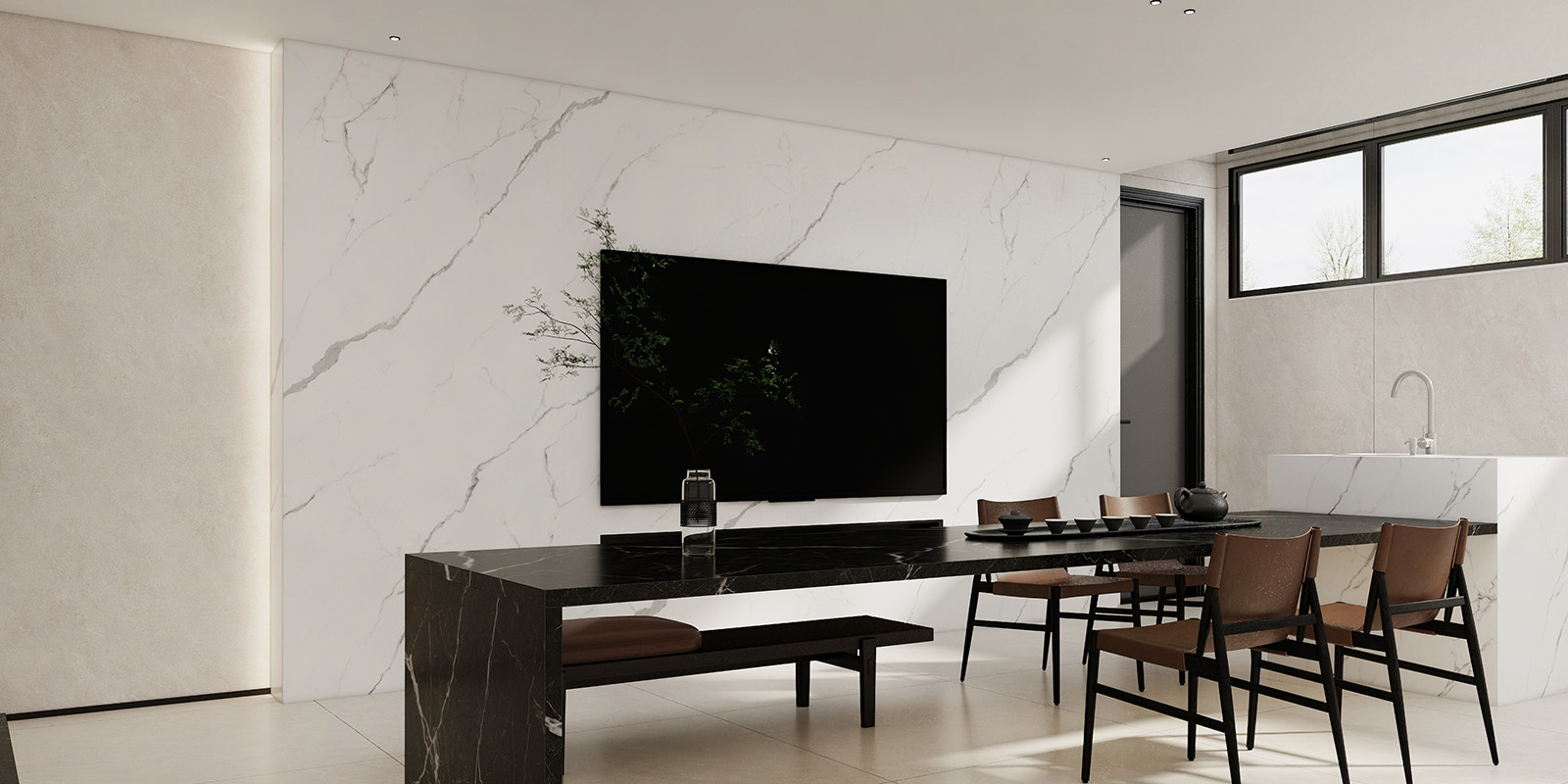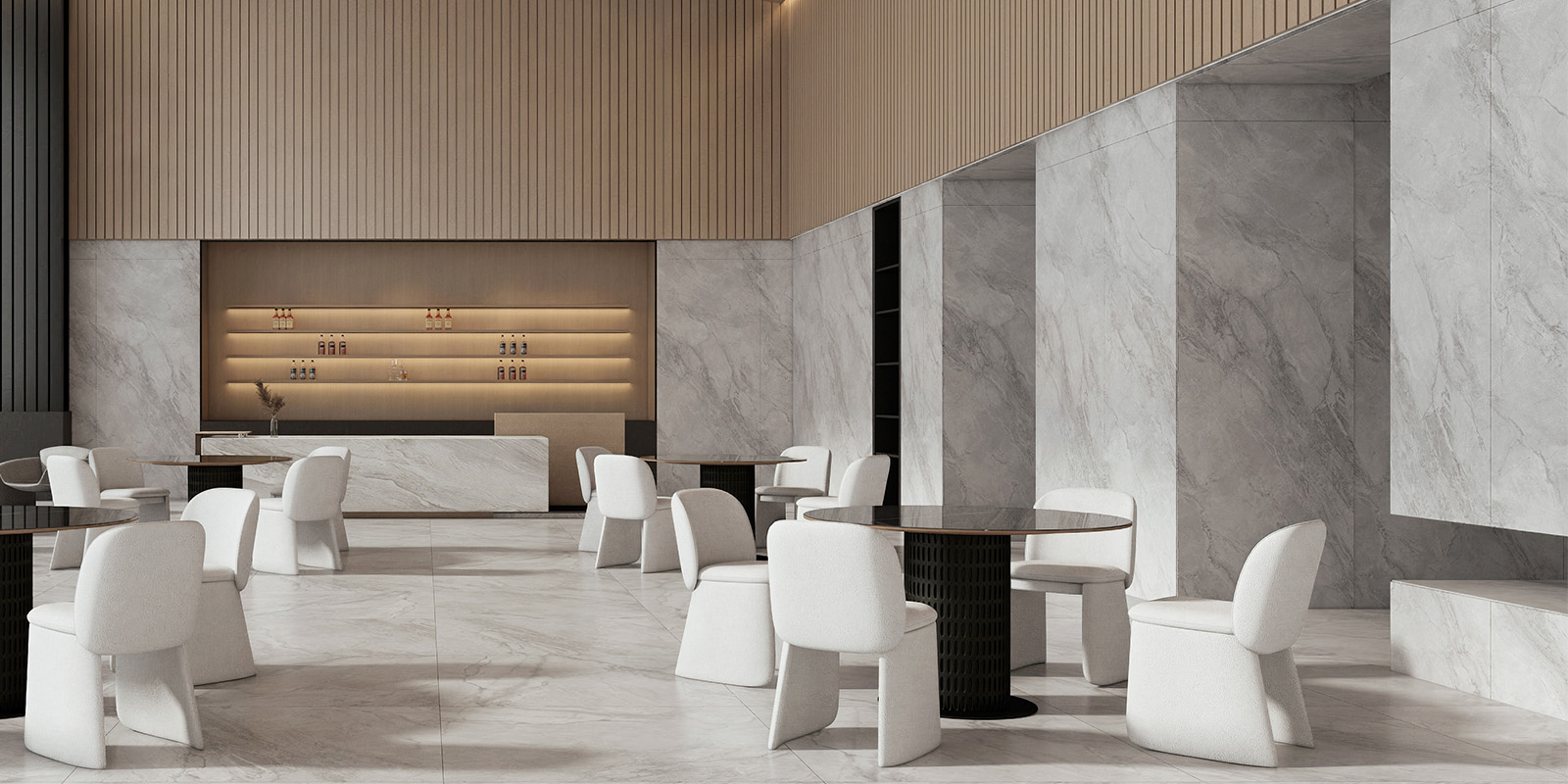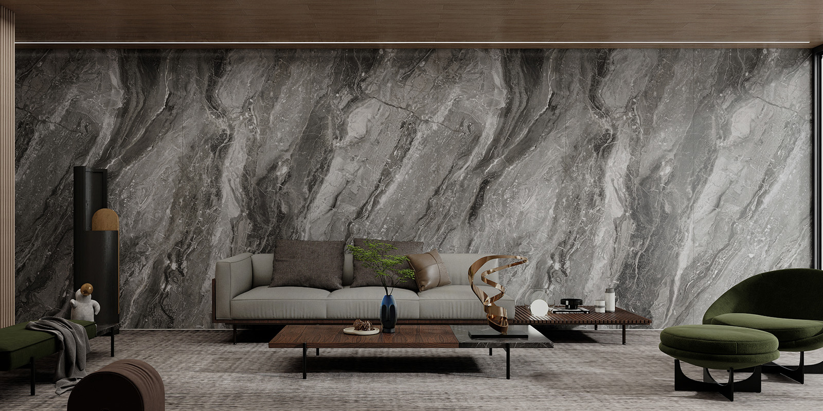 精选天然大理石材,1200X2780MM,6毫米厚度,柔雅精雕和柔雅微光工艺,一片到顶,适用空间更广